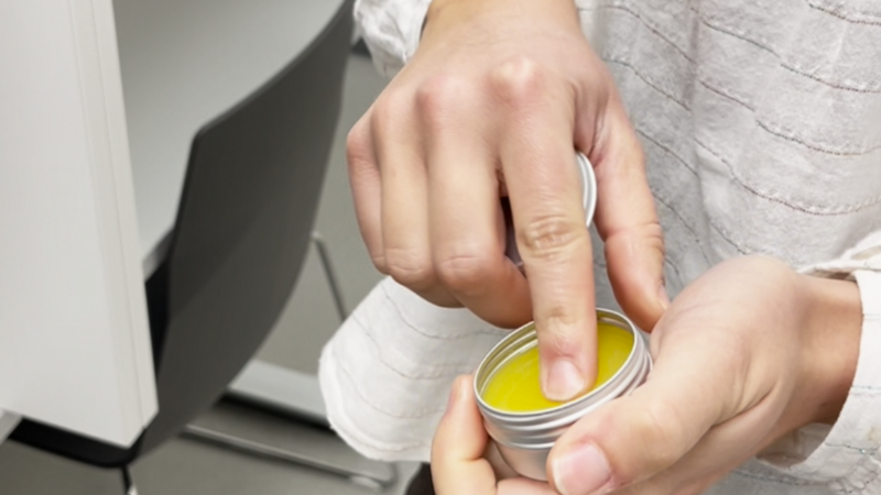 Bildnachweis 3: Ein mit Gel befülltes Döschen für die Prüfung des Tastsinns