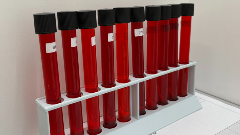 Bildnachweis 2: Rote Reagenzgläser für die Prüfung des Sehsinns