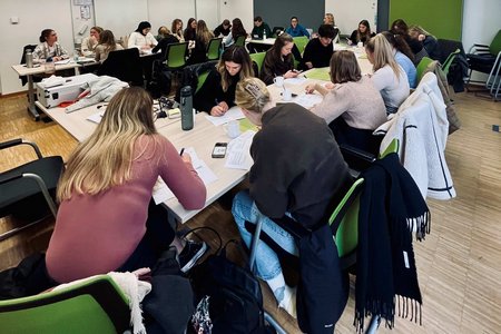 Zum Abschluss der Exkursion arbeiteten die Studierenden an der Technischen Hochschule Augsburg an verschiedenen Aufgaben und Reflexionsfragen. So konnten sie ihre Eindrücke vertiefen und mit theoretischen Konzepten verbinden, um ein ganzheitliches Verständnis für die historische, soziale und ökonomische Bedeutung der Fuggerei zu gewinnen.