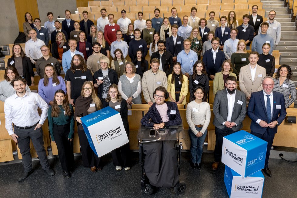 Im akademischen Jahr 2025/2026 vergibt die Hochschule Kempten 60 Deutschlandstipendien an insgesamt 82 Studierende. Die Teilung einzelner Stipendien, etwa wenn Studierende ihr Studium bereits zum Ende des Wintersemesters abschließen, ermöglicht es, dass mehr junge Menschen davon profitieren. Jede dieser Förderungen steht für eine eigene, starke Geschichte, die zeigt, wie vielfältig die Wirkung des Deutschlandstipendiums ist. Bei der feierlichen Vergabe im Thomas-Dachser-Auditorium kamen Ende November traditionell Fördernde sowie Stipendiatinnen und Stipendiaten in einem festlichen Rahmen zusammen.