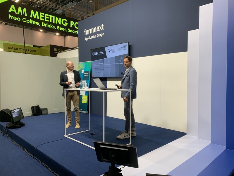 Auch das IPI war vor Ort und führte inspirierende Gespräche mit Ausstellern und Messebesuchern, um laufende Projekte weiterzuentwickeln und spannende neue Ideen zu generieren. Gemeinsam mit dem Projektpartner EOS GmbH wurde zudem der entwickelte Compliant Mechanism Greifer auf der Formnext Application Stage vor einem neugierigen und gut besetzten Publikum präsentiert. "Wir freuen uns sehr über die zahlreichen interessanten Gespräche und spannenden Kontakten, die wir weiter vertiefen werden", resümiert Professor Frieder Heieck, wissenschaftlicher Leiter am IPI und Experte für Additive und Zirkulräre Fertigung.