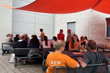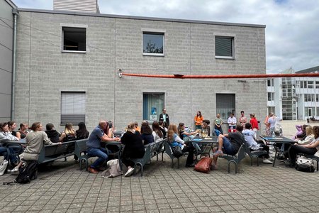Nach der Schnupperlehrveranstaltung gingen die Interessierten, aufgeteilt in ihre jeweiligen Studiengänge, über den Campus, um einen ersten Überblick zu erhalten. Stationen waren neben dem Sekretariat, der Mensa und der Bibliothek auch die sogenannte Lerntreppe. Dort findet traditionell die Begrüßung der Erstsemester im Wintersemester statt. Während des Rundgangs bot sich den Gästen die Gelegenheit, viele ihrer Fragen direkt zu stellen. Auch während der Mittagspause in der Mensa sowie dem anschließenden Fragenhagel ging der Austausch weiter.