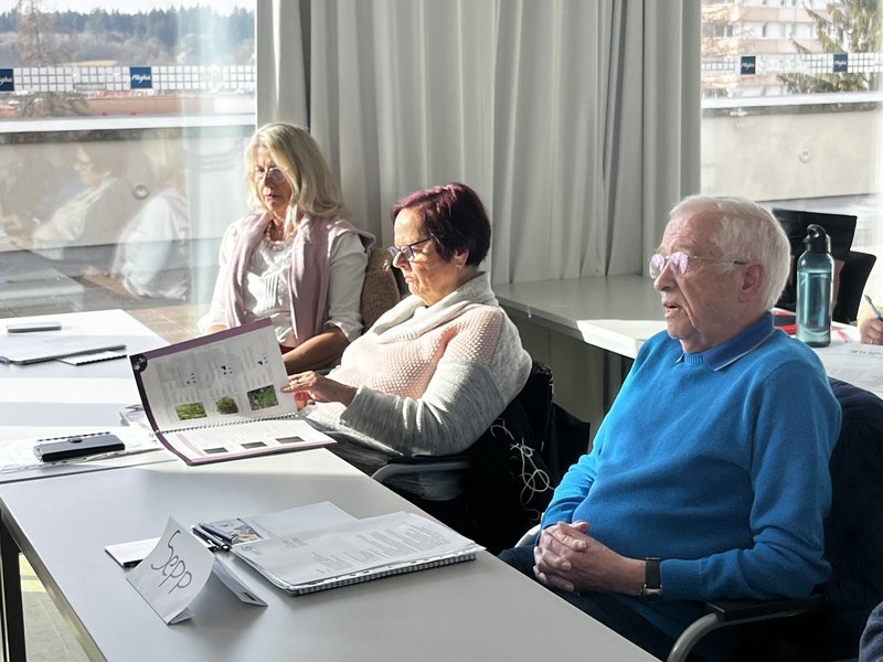Bewegung, Wohlbefinden und Ernährung: Das sind die Themenschwerpunkte der BeStärken+-Zustatzfortbildung für Alltagsbegleitende. In insgesamt acht Unterrichtseinheiten à 45 Minuten lernen die Teilnehmenden Aktivitäten in diesen Bereichen kennen, die sie mit den Pflegebedürftigen ausführen können. Das können zum Beispiel sitzende oder stehende Bewegungsübungen sein, die für den Muskelerhalt im Alter essenziell sind. Dafür wird von den Projektleiterinnen zunächst Input aus der Forschung gegeben: Welche Methoden der Vermittlung gibt es? Gibt es Strategien, mit denen sich Pflegebedürftige für Bewegungsübungen motivieren lassen?
