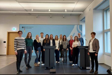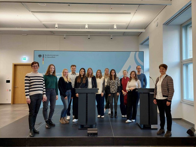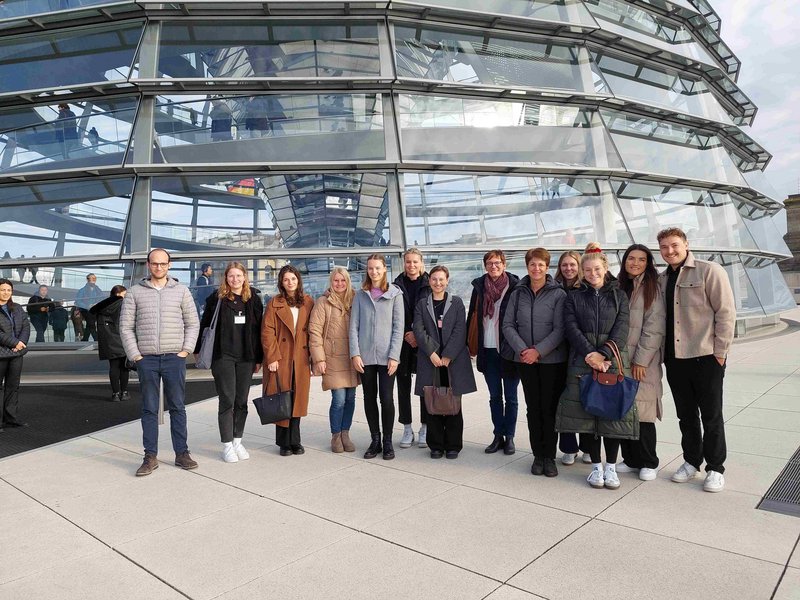 Elf Studierende des Studiengangs Gesundheitswirtschaft nahmen vom 24.11.-27.11.2024 an einer Exkursion der Fakultät Soziales und Gesundheit in die Bundeshauptstadt teil. Organisiert wurde die Studienfahrt von Prof. Dr. Astrid Selder und Prof. Dr. Tanja Wiedemann im Rahmen der Schwerpunkte Patientenorientiertes Versorgungsmanagement (Wiedemann) und Vertragsmanagement (Selder). Auf dem Programm der viertägigen Reise standen neben dem Deutschen Bundestag und dem Bundeskanzleramt auch das Bundesministerium für Gesundheit, das Medizinhistorische Museum der Charité sowie der Besuch des GKV-Spitzenverbands.