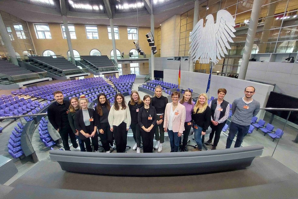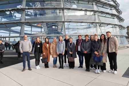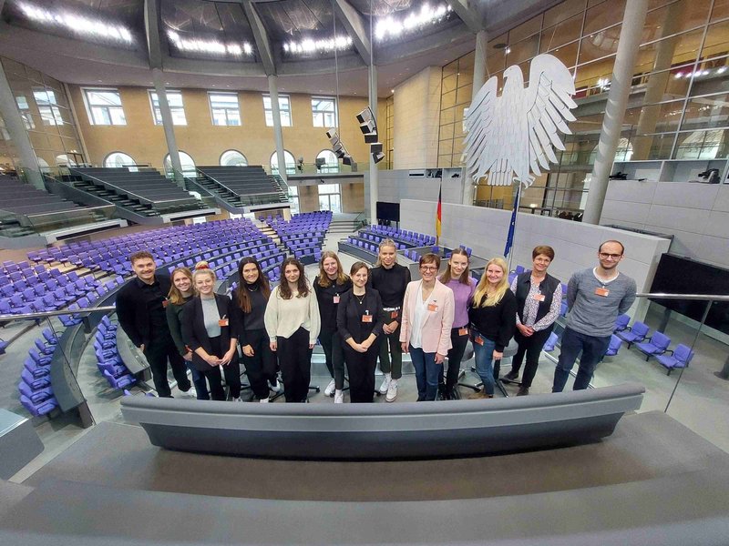 Im Rahmen der Führung durch den Deutschen Bundestag durch Carolin Rapp, Mitarbeiterin der Bundestagsabgeordneten und Professorin der Sozialen Arbeit (Schwerpunkt Jugendarbeit) Dr. Anja Reinalter, sowie durch das Bundeskanzleramt hinterließen unter anderem diese Punkte einen bleibenden Eindruck: