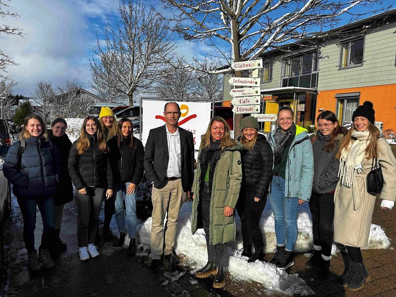 Entgegen gängiger Stereotype überraschte das Kinderhospiz St. Nikolaus die Teilnehmenden der Exkursion mit viel Wärme und viel Leben. Es hat sie beeindruckt, wie das freundliche Team derart individuelle Angebote für die verschiedenen Kinder und Familien anbietet. Nicht zuletzt haben sie alles über die Trägerschaft, die Finanzierung und die Kostenstrukturen sowie die Besonderheiten der Vergütungsverhandlungen eines Kinderhospizes erfahren. Im Anschluss besichtigte die Gruppe noch die Begegnungsräume wie Turnhalle und Kreativ-Werkstatt auf der gegenüberliegenden Straßenseite und ließ den Besuch auf dem kleinen, gemütlichen Weihnachtsmarkt in vorweihnachtlicher Stimmung ausklingen.
