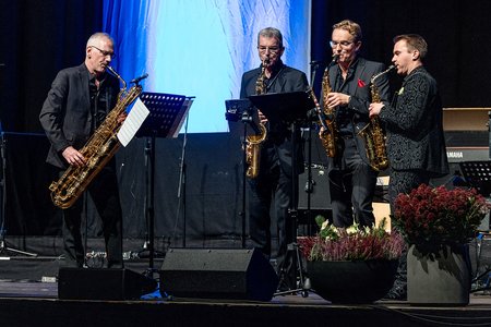 Für den musikalischen Rahmen sorgten das Saxophonquartett Jam² und die Big Band der Hochschule „Jazzbrauerei“. Das Quartett begleitete den Nachmittag mit zwei Einlagen – mit dabei: Dr. Albert W. Schultz, der Hochschulratsvorsitzende, diesmal in ganz neuer Funktion am Saxophon. Locker, souverän und mit sichtbarer Spielfreude sorgte er gemeinsam mit seinem Ensemble für gute Laune und viele lächelnde Gesichter im Publikum. Später brachte die Jazzbrauerei unter Leitung von Eckart Auer mit ihren groovigen Rhythmen und Sängerin noch einmal Bewegung in den Saal und schuf eine wunderbar entspannte Atmosphäre.