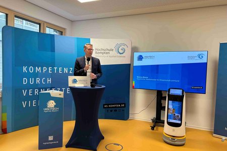 Im Anschluss gab Hochschulpräsident Prof. Dr. Wolfgang Hauke einen Einblick in die Nutzung des neuen Gebäudes. Auf rund 580 Quadratmetern bietet der Modulbau Raum für zentrale Zukunftsthemen der Hochschule. Untergebracht sind unter anderem das Robotiklabor „Care and Mobile Robots“, das Institut für Maschinelles Sehen, das Promotionszentrum für Transformation und nachhaltige Entwicklung, die IT des Forschungszentrums Allgäu, zwei Professuren des Bayerischen Zentrums Pflege Digital, das Zentrum für Hochschuldidaktik Kempten sowie die Stabsstelle Wissens- und Technologietransfer. Zwei hochflexible Seminarräume – darunter das LehrLernLab – ergänzen das Angebot.