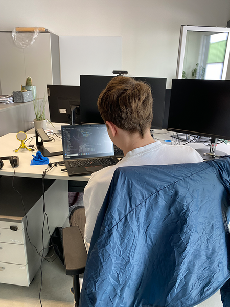 Die zweite Hälfte seines Praktikums verbrachte er im Bereich Künstliche Intelligenz bei Jorge Mandlmaier. Zunächst beschäftigte er sich mit Reinforcement Learning: Anhand des Furuta-Pendels verfolgte er, wie ein KI-Agent durch Training lernt, ein physikalisches System zu steuern. In kleinen Simulationen konnte Lion direkt beobachten, wie sich das Verhalten des Agenten über die Zeit verbessert.