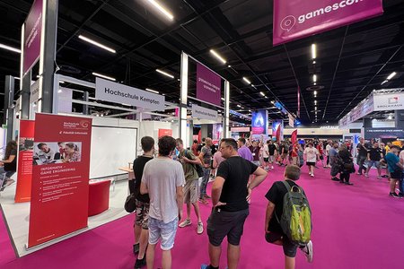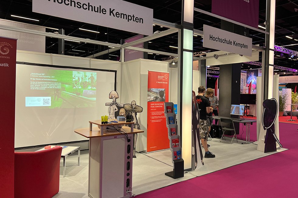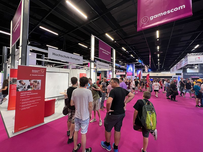 Nach zwei Jahren pandemiebedingter Pause fand eine der weltgrößten Computerspielmessen, die „gamescom“, nun wieder in Präsenz in Köln mit einer Besucheranzahl von 265.000 statt. Die Hochschule Kempten stellte sich bei diesem fünftägigen Event mit einem rund 24m² großen Stand im Job & Campus-Bereich vor.