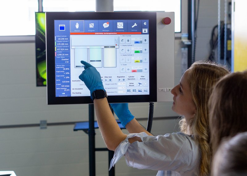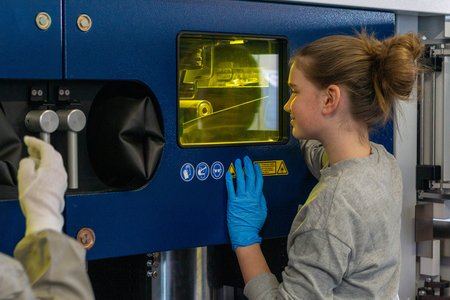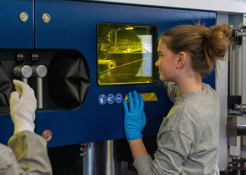 Von 9 bis 12 Uhr führten Katja Stocklossa, Saskia Glück und Tatjana Krau die Schülerinnen durch ein abwechslungsreiches Programm. Nach einer kurzen Vorstellung unseres Instituts widmeten sie sich dem Thema Additive Fertigung. Um die Technologie greifbar zu machen, wählten sie ein praxisnahes Beispiel: kaputte Haarklammern. Gemeinsam entwickelten die Schülerinnen mit unseren wissenschaftlichen Mitarbeiterinnen ein passendes Ersatzteil in einem CAD-Programm und konnten anschließend bei der Laborbesichtigung den Druckprozess an einem FDM-Drucker live mitverfolgen. Ein weiteres Highlight war die Führung durch unser AM-Labor, in dem sie das Metall-LPBF-Verfahren erklärten und deren Einsatzmöglichkeiten zeigten.
