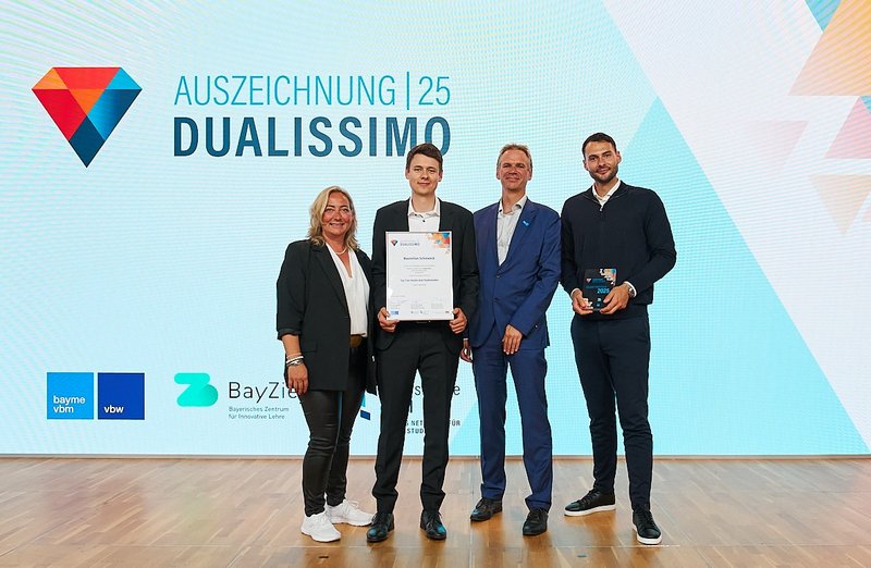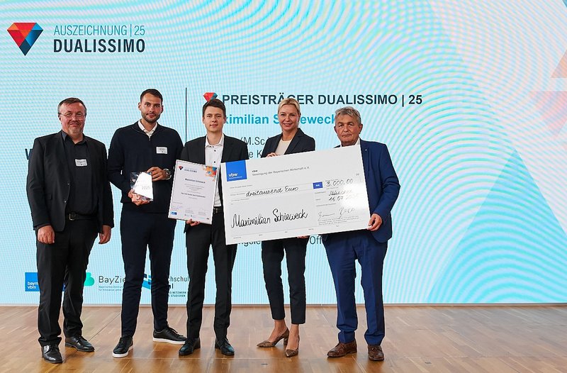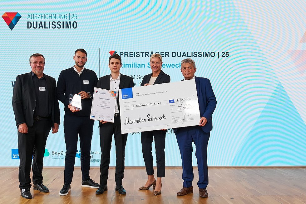 Der Preis „Dualissimo“ wird alle zwei Jahre von hochschule dual gemeinsam mit den bayerischen Metall- und Elektroarbeitgeberverbänden bayme vbm und der vbw – Vereinigung der Bayerischen Wirtschaft e. V. vergeben. Aus mehr als 130 Bewerbungen wählte eine unabhängige Jury fünf Preisträgerinnen und Preisträger aus, die durch überdurchschnittliche Studienleistungen, exzellente Praxisbeurteilungen und besonderes gesellschaftliches Engagement überzeugen konnten. www.dualissimo.de