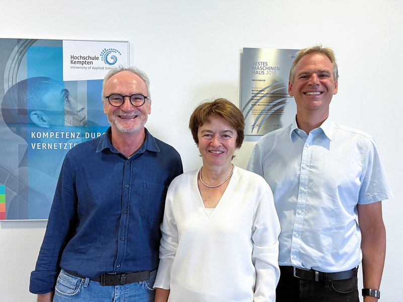 Foto: v. l. n. r. Prof. Dr. Arthur Kolb, Vizepräsident für Internationalisierung und Gleichstellung, Prof. Dr.-Ing. Regina Schreiber, Vizepräsidentin für Forschung und Transfer und Prof. Dr.-Ing. Dirk Jacob, Vizepräsident für Lehre und Weiterbildung; Bildnachweis: Hochschule Kempten/Sybille Adamer