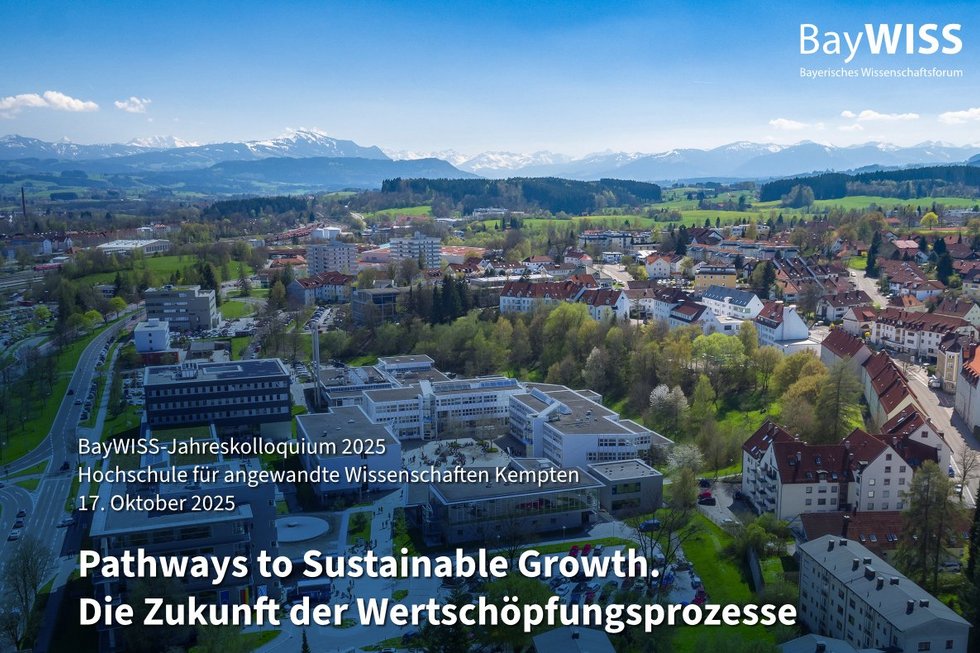 Am 17. Oktober 2025 findet das Jahreskolloquium des Bayerischen Wissenschaftsforums (BayWISS) unter dem Titel „Pathways to Sustainable Growth – Die Zukunft der Wertschöpfungsprozesse“ an der Hochschule für angewandte Wissenschaften Kempten statt.
