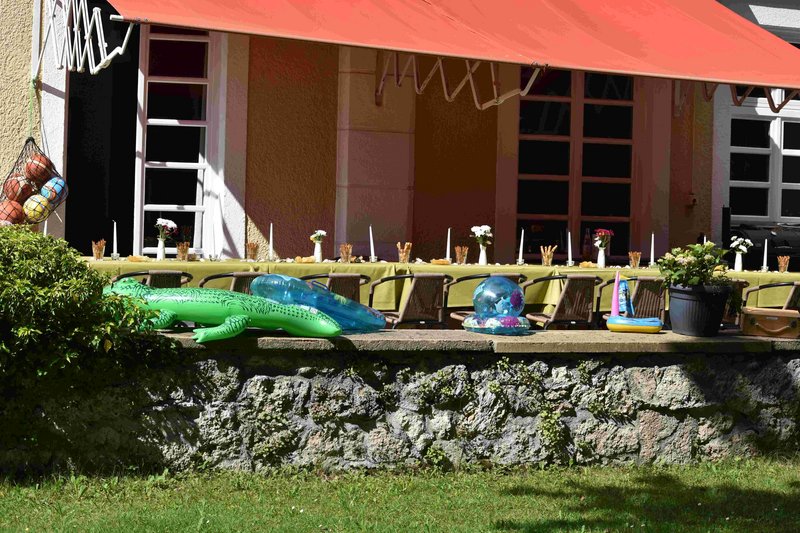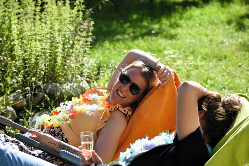 Am 14.06.2024 um 17 Uhr war es dann soweit: die Sommerparty konnte bei strahlendem Sonnenschein in Gauting starten. Zunächst gab es einen Sektempfang. Hier wurden die Studierenden des 2. Semesters von der Projektgruppe sowie von Prof. Dr. Regina Münderlein (Studiengangskoordinatorin und Dozentin im Modul) und Tanja Wind begrüßt. Passend zur Sommerparty wurden alle mit Blumenketten versorgt. Es standen verschiedene Spiele zur Verfügung: Badminton, Minigolf, eine Selfiestation und mehr. Im Garten waren entsprechend des Mottos Sonnenliegen aufgebaut, die gerne genutzt wurden. Um 18 Uhr gab es Essen. Am Grill stand Rajendra Bhandari, ein Student aus dem 6. Semester, und versorgte die hungrigen Studierenden mit verschiedenen Gerichten.