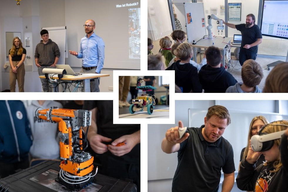 Am Dienstag, den 15. Oktober fiel der Startschuss für den ersten Schüler-Robotik-Wettbewerb, initiiert und geleitet von Prof. Matthias Lorenzen statt. Über 50 technikbegeisterte Schülerinnen und Schüler waren dabei und konnten Robotik hautnah erleben. Neben der Bekanntgabe der spannenden Aufgabenstellung gab es beeindruckende Einblicke in die Welt der Robotik: Von spannenden Demonstrationen im KUKA Labor über Hands-on Sessions zum Programmieren von Cobots mit Laboringenieur Markus Krömer bis hin zum Einsatz von Virtual Reality und Augmented Reality im industriellen Umfeld mit Prof. Peter Stich.