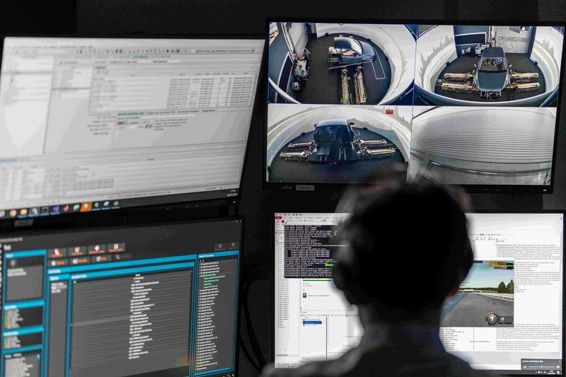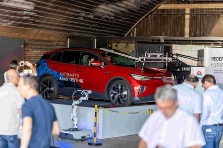 Ein zentrales Highlight war die Live-Demonstration eines Vehicle-in-the-Loop-Szenarios auf dem benachbarten FAKT-Motion Gelände: Zwei reale Fahrzeuge, gesteuert durch Fahrroboter, interagierten in einer virtuellen Umgebung mit simulierten Verkehrsteilnehmern – ein eindrucksvolles Beispiel dafür, wie sich Mixed Reality als Schlüsseltechnologie für sichere, effiziente Fahrzeugtests etabliert.