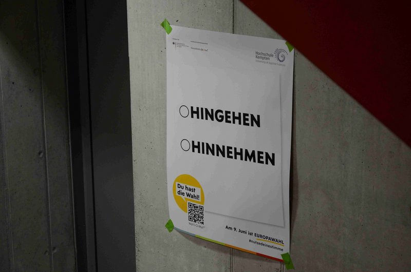 Zusammen mit der Kommunikationsagentur thewhiteelephant aus Hamburg haben Professorinnen und Professoren der Fakultät Soziales und Gesundheit der Hochschule Kempten eine Plakataktion zur Europawahl erstellt. Die Kommunikationsagentur thewhiteelephant hat die Kampagne pro Bono gestaltet. Sie wurde durch MITEINANDER KEMPTEN GESTALTEN der Stadt Kempten im Rahmen des Bundesprogramms Demokratie leben gefördert.