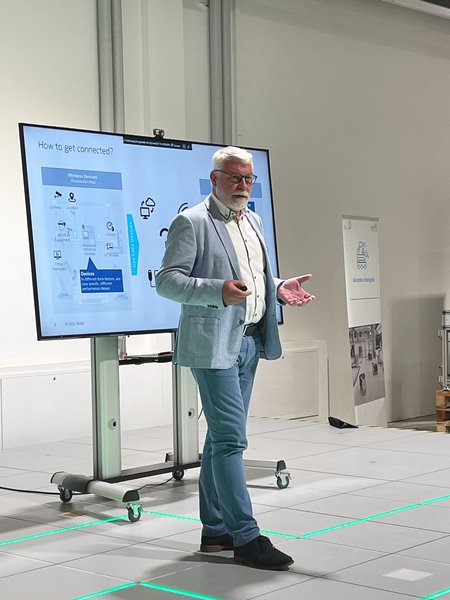 Zu Beginn begrüßten die beiden Leiter des IPI – Institut für Produktion und Informatik, Prof. Dr. Frieder Heieck und Prof. Dr. Bernd Lüdemann-Ravit, alle Teilnehmenden sowie die beiden Vortragenden, Kristine Puritz (Mercedes-Benz AG) und Tom Richter (Nokia Enterprise Sales – Digital Industries). Nach einem kurzen Einblick in die umfangreichen Tätigkeiten des IPI, das als anwendungsorientierte Forschungseinrichtung Industriepartner bei der Digitalisierung ihrer Produktion unterstützt, widmete man sich gespannt den beiden Fachvorträgen.