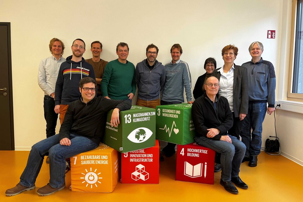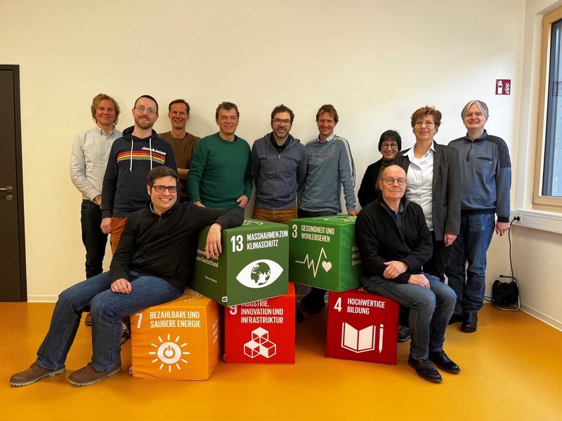 Foto: Neu gewählter Leiter, Prof. Dr. Matthias Klingele (hinten links), mit den professoralen Mitgliedern des Promotionszentrums „Transformation und nachhaltige Entwicklung“;Bildnachweis: Hochschule Kempten/Charlotte Nate