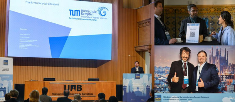 Im Rahmen des 11th International Symposium on Sensor Science (I3S 2025) in Barcelona präsentierte Patrick Huber, Promovierender der Hochschule Kempten und der Technischen Universität München, aktuelle Ergebnisse seiner Forschungsarbeit. Die internationale Konferenz brachte Wissenschaftlerinnen und Wissenschaftler aus Forschung und Industrie zusammen, um neue Entwicklungen und Herausforderungen im Bereich der Sensorwissenschaften zu diskutieren.