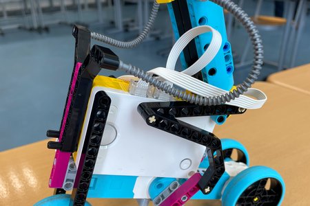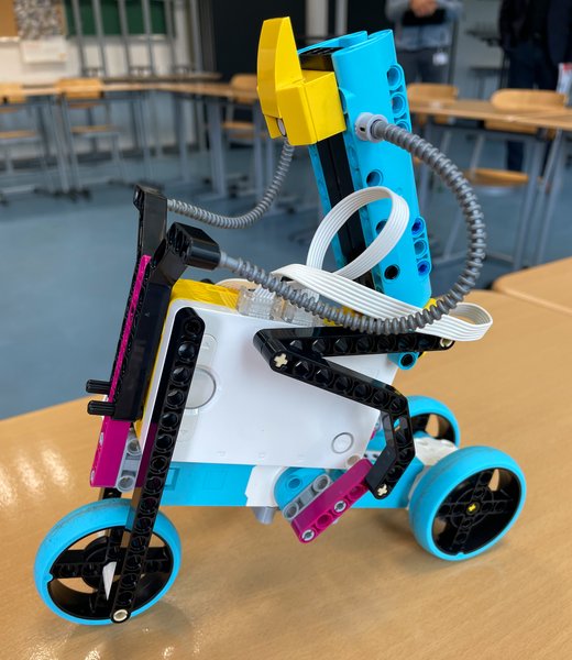Beeindruckend auch eine Prothese, die am Unterarm befestigt werden kann und mit der über eine Greiffunktion kleine Objekte wie ein Stift gegriffen, gehalten und transportiert werden können. Auch die weiteren Roboter in Form eines E-Bikers und eines Tresors sind imposant. „Schülerinnen und Schüler frühzeitig an moderne Technik und Programmierung heranzuführen ist großartig“, lobt Immenstadts Zweiter Bürgermeister Siegfried Zengerle. Auch er habe früher begeistert mit Lego gespielt, so tolle Funktionen gab es da allerdings noch nicht. Dass so viele Robotik-Sets im Unterricht zum Einsatz kommen können, ist auf die gemeinsame Initiative des Gymnasiums und dem Sonthofer Institut für Produktion und Informatik (IPI) der Hochschule Kempten zurückzuführen. Die Nachwuchsförderung lag auch den Akteurinnen und Akteuren aus Wirtschaft und Politik am Herzen, die sich engagiert an der Aktion beteiligten. „Für die sehr gute Zusammenarbeit sind wir sehr dankbar“, freut sich Schulleiterin Ulrike Hitzler. Ihr Dank gilt auch den Lehrern und aufgeschlossenen, kreativen Schülern, ohne die so ein Kurs nicht möglich wäre.