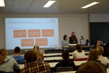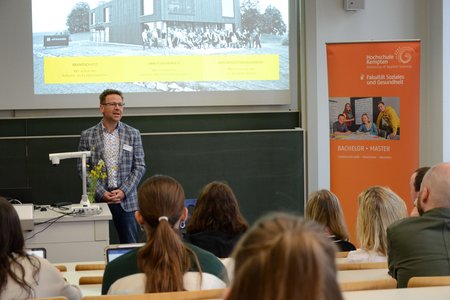 Parallel dazu haben Lehrende und Studierende die Studiengänge der Fakultät Soziales und Gesundheit in thematischen Vorträgen vorgestellt. Dabei haben die Studieninteressierten vertiefte Einblicke in die Studiengänge erhalten und konnten im Anschluss an die Studiengangsvorstellungen in den direkten Austausch treten.