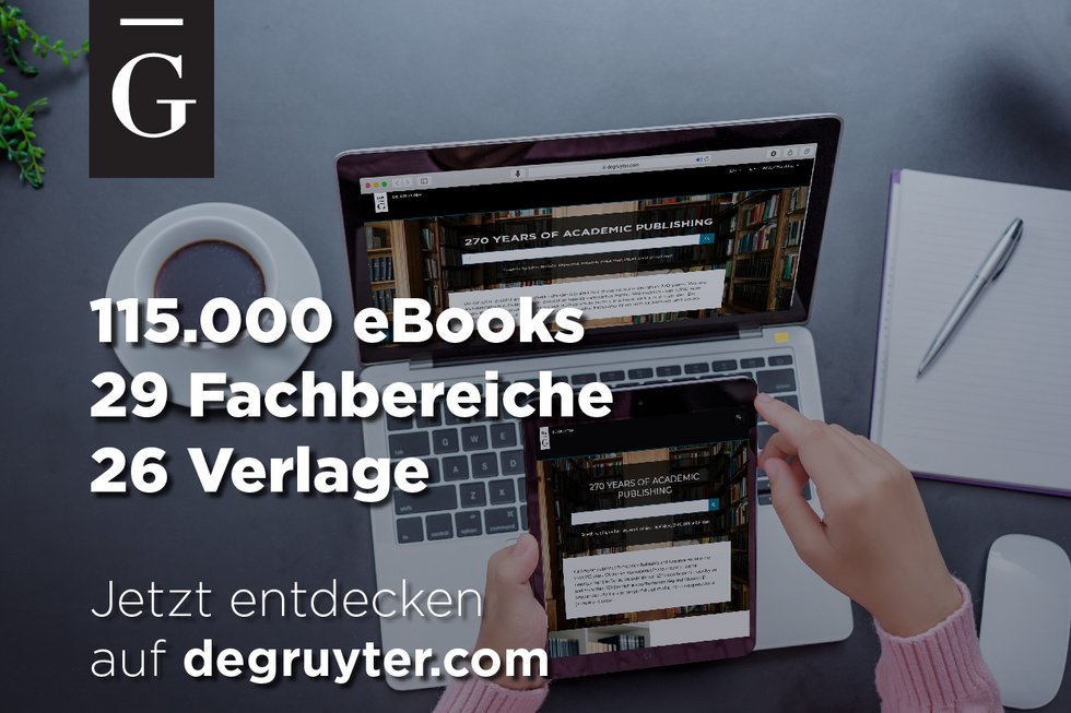 Zusätzlich zu unserem bereits umfangreichen Bestand an E-Books haben wir nun auch Zugriff auf 115.000 E-Books des De Gruyter-Verlags. Sie können diese Bücher direkt auf dem Verlagsportal von De Gruyter recherchieren. Sie sind aber auch alle in unserem Bibliothekskatalog enthalten.