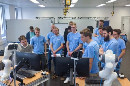 Für die Lösung der Aufgabe stand jedem der vier Teams ein Roboter der Fa. Franka Emika GmbH, ein Robotikunternehmen aus München, zur Verfügung. Dieser sollte für die Lösung der Challenge eingesetzt werden, um mit seinen integrierten Kraftsensoren und der intuitiven Benutzeroberfläche die schwierige Aufgabe zu meistern. Für die Einführung in die Bedienung des Roboters war auch ein Vertreter der Fa. TQ-Systems, die die Roboter in Durach bei Kempten produzieren, vor Ort. Für die komplexen Aufgaben waren die „fühlenden“ Roboter genau richtig. Durch das Erkennen von Kräften und Momenten durch den Roboter konnten auch so schwierige Abläufe wie das Öffnen der Kabelklemmen sicher gelöst werden.