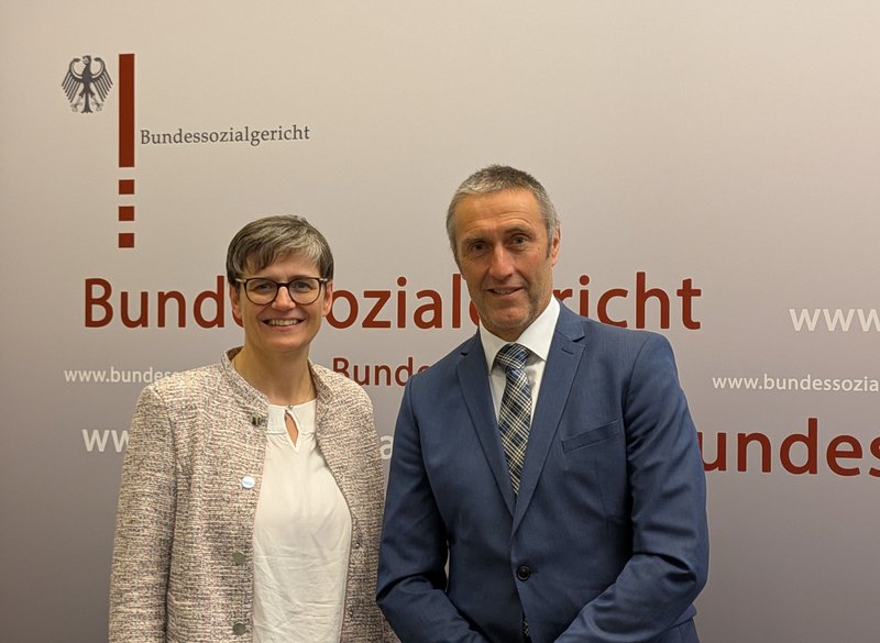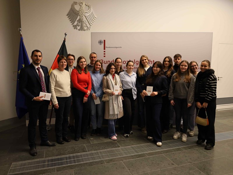 Ganz besondere Erwähnung verdienen zahlreiche Gespräche mit Dr. Claudia Matthäus, einst Lehrbeauftragte der Fakultät und seit Januar 2024 selbst Richterin am Bundessozialgericht sowie ein Austausch mit allen fünf Mitgliedern des 2. Senats, die dafür eine kostbare Pause zwischen zwei Verhandlungen „opferten“. Dabei stellte sich auch heraus, dass eine Richterin, hätte sie sich nicht für die Rechtswissenschaften entschieden, Meeresvulkanologin geworden wäre.