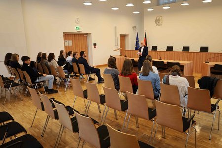 Fünfzehn Studierende besuchen das Bundessozialgericht und lernen eine Richterin kennen, die beinahe Vulkane unter Wasser erforscht hätte
