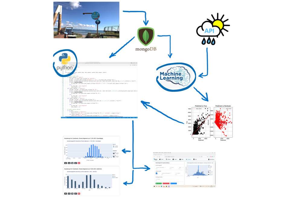 KI macht’s möglich: Der Einsatz von MachineLearning-Algorithmen erlaubt die Prognostizierung von Besucherzahlen. Dazu nutzt das System aktuelle Daten und die Daten aus der Vergangenheit zusammen mit der Wettervorhersage. Die aktuellen Besucherzahlen werden mittels Sensoren gemessen. Zeigt die Auslastungsgrafik eine zu erwartende Besucherspitze für die nächsten Tage an, kann das Tourismusbüro mit entsprechenden Alternativ-Angeboten und entsprechender Werbung gegenlenken. Das sorgt für zufriedene Touristen und Anbieter gleichermaßen, weil das touristische Angebot beispielsweise einer Gemeinde bestmöglich ausgelastet wird, lange Wartezeiten oder wegen Überfüllung geschlossene Attraktionen vermieden werden können.