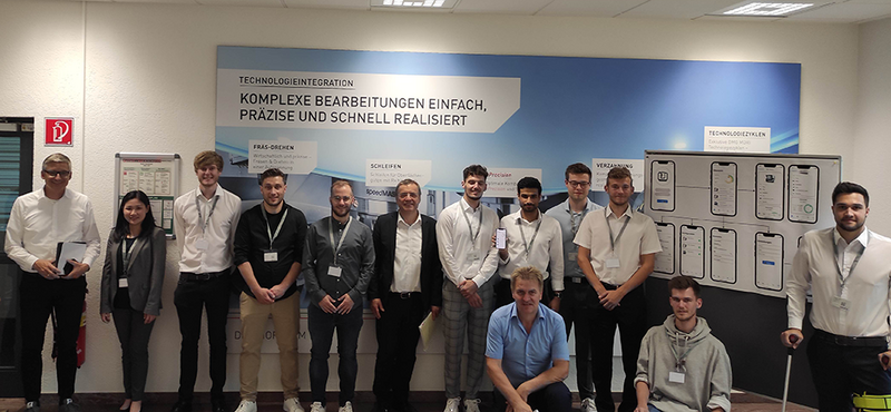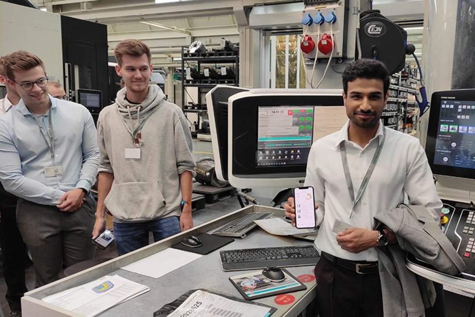 Ein gemischtes Team aus Studierenden der Wirtschaftsinformatik, Informatik und des Wirtschaftsingenieurwesens präsentieren ihre neu entwickelte Smartphone-App zur Anzeige von Echtzeitmaschinendaten im Kontext von Industrie 4.0. Das Projekt wurde am Digital Laboratory der Hochschule in Zusammenarbeit mit dem Industriepartner DMG Mori angefertigt.