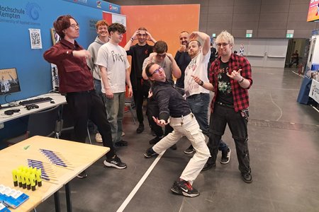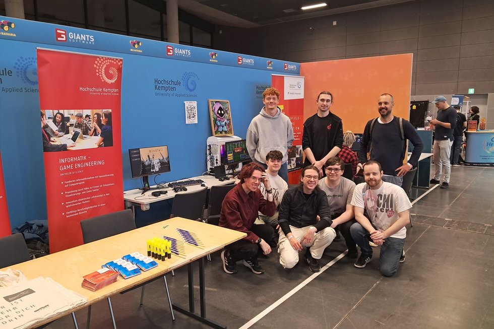 Mit insgesamt vier Computerspiel-Prototypen haben wir den Stand der Hochschule Kempten interaktiv gestaltet und Interessierte über die Studienpläne der Studiengänge Game Engineering (Bachelor) und Game Engineering und Visual Computing (Master) informiert.