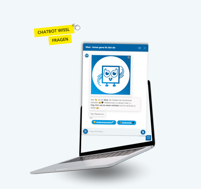 Wissl, unser intelligenter Chatbot, steht dir rund um die Uhr zur Verfügung und hat auf fast alle Fragen die passende Antwort bzw. den richtigen Ansprechpartner.