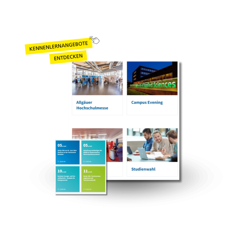 Ja – bei Schnuppervorlesungen, Campustagen, der Allgäuer Hochschulmesse oder individuellen Beratungsgesprächen. So kannst Du die Hochschule, Studiengänge und Studierende direkt kennenlernen.