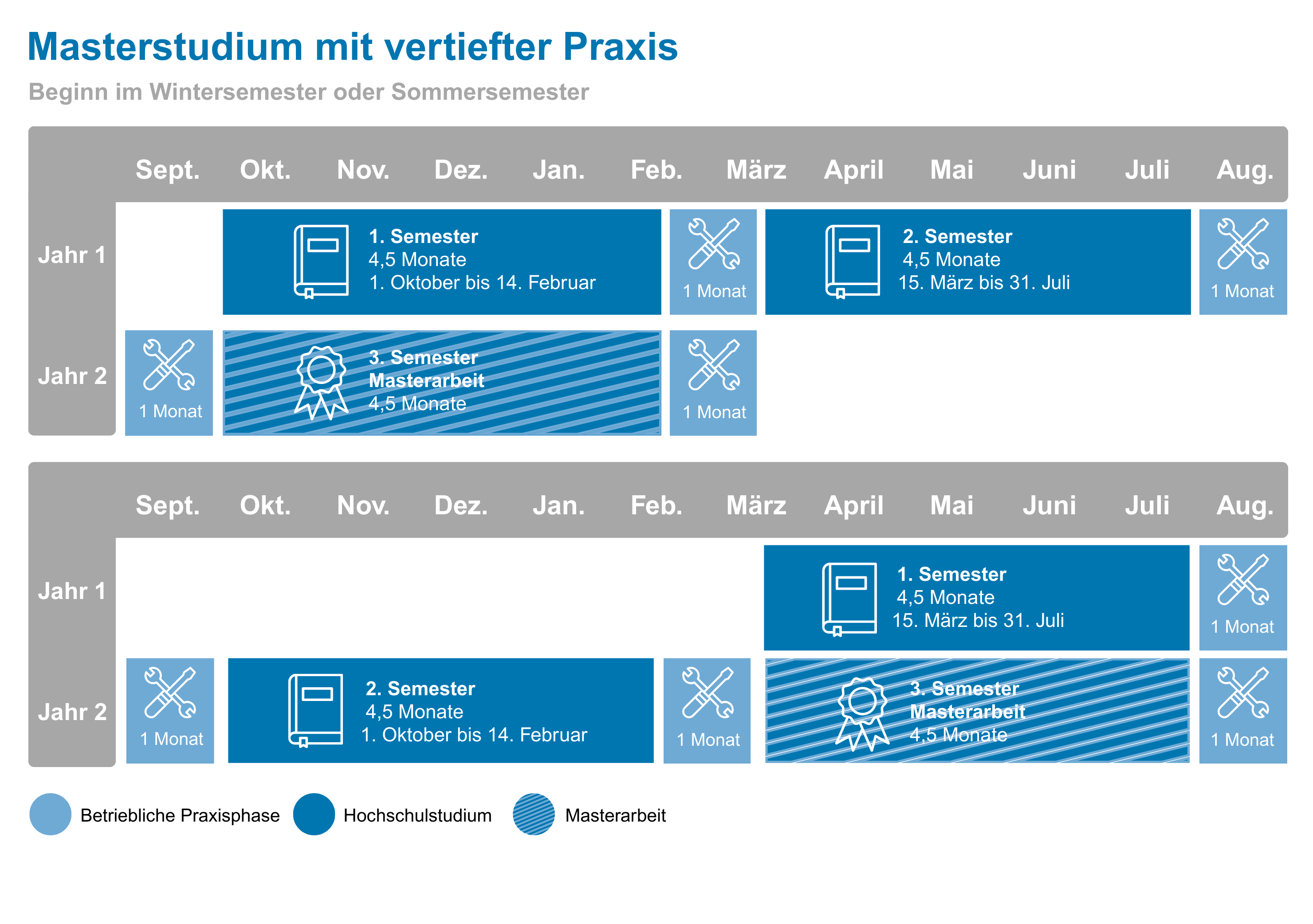 Studienablauf des Studiums mit vertiefter Praxis: Master
