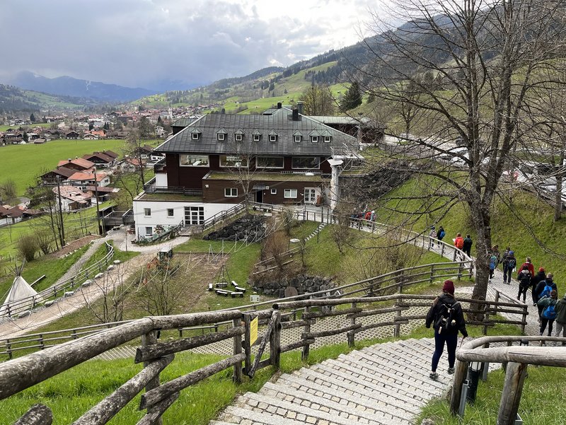 Wenn es einen guten Start für eine Exkursion ins Allgäu gibt, dann mit einem Kässpatzenessen! Und die gab es reichlich am Anreiseabend am Buffet der Jugendbildungsstätte (Jubi) der Jugend des Deutschen Alpenvereins (JDAV). Dabei sind die Kässpatzen nicht nur der Allgäuer Kulinarik, sondern auch der Grundsatzentscheidung der Jubi geschuldet, seit Anfang 2022 rein vegetarische Verpflegung anzubieten. Eine CO2-Bilanzierung des Hauses hatte gezeigt, dass rund die Hälfte der CO2 Emissionen auf die Verpflegung, damals noch fleischhaltig, zurückzuführen waren.